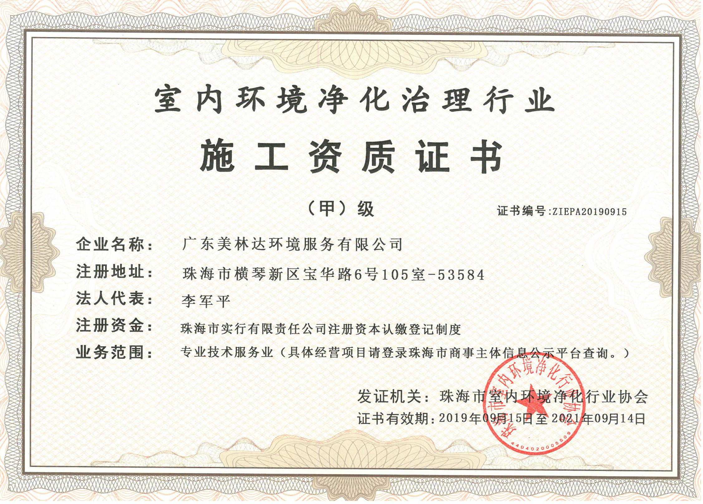 空氣凈化施工資質(zhì)證書